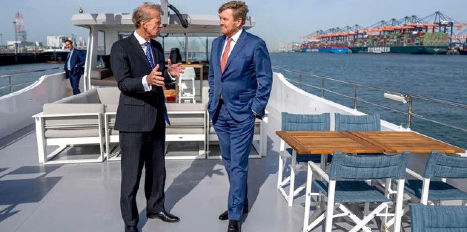 On a boat trip along the Maasvlakte, the King spoke with Allard Castelein (CEO of the Port of Rotterdam Authority), Randolf Weterings (Programme Manager Electrification & Hydrogen) and Alice Krekt (Climate Programme Director at Deltalinqs), about the hydrogen developments in the port of Rotterdam. On the basis of developments in various projects, representatives of a number of companies explained the hydrogen value chain: from import and export to hydrogen production in the port, the development of demand in the industry, and the transport of hydrogen, to the construction of hydrogen pipelines (the so-called ‘H2-backbone’ through the port and the Delta corridor to North Rhine-Westphalia via Chemelot). ThyssenKrupp Steel representatives provided some further information on hydrogen demand in Germany.